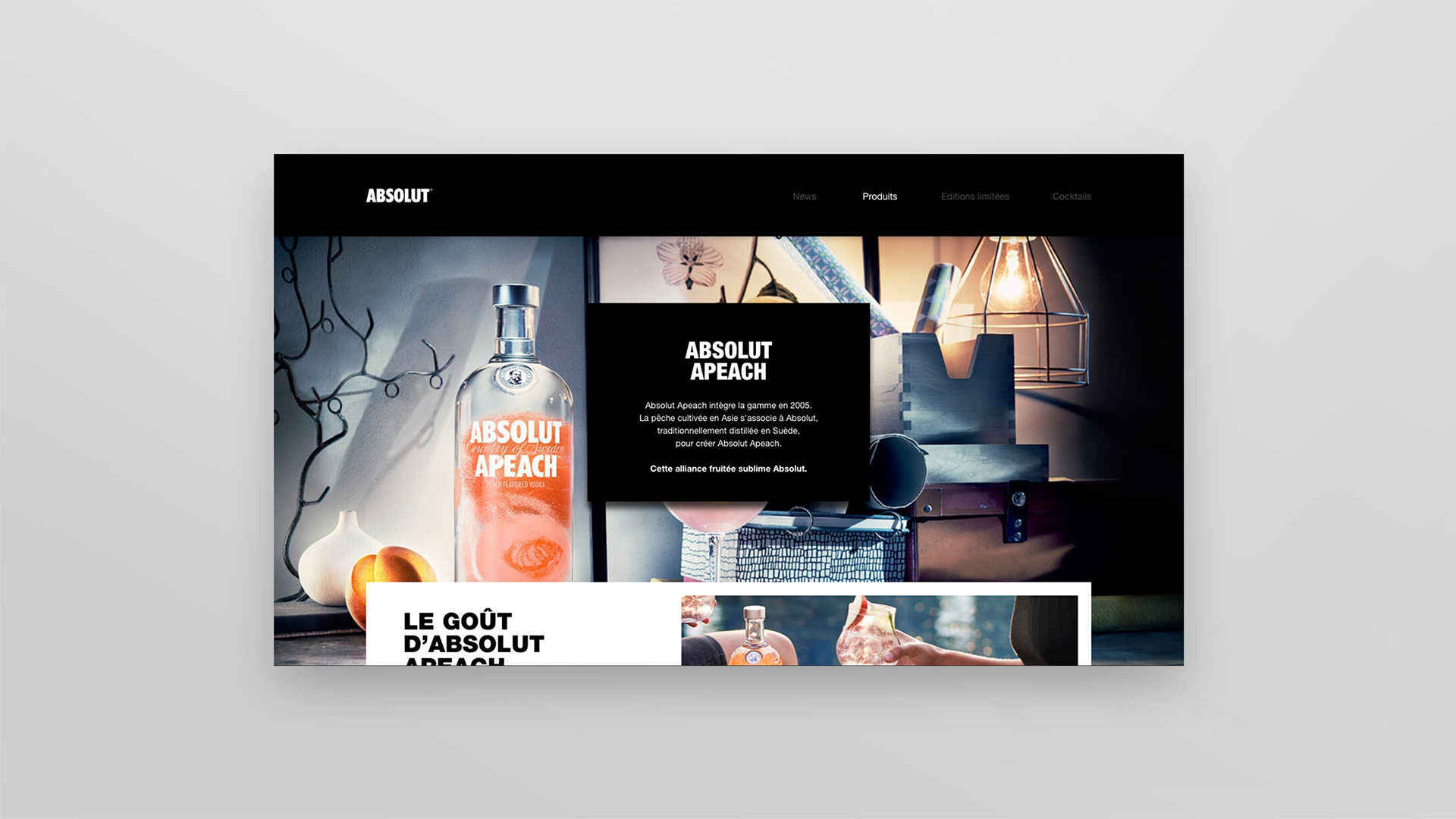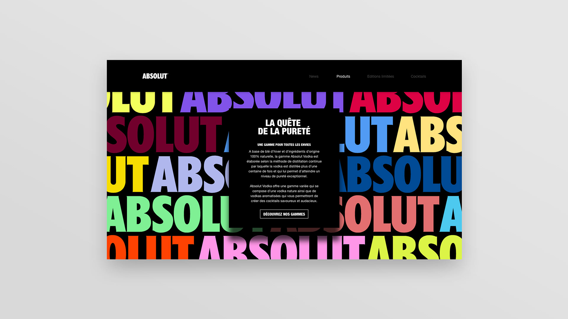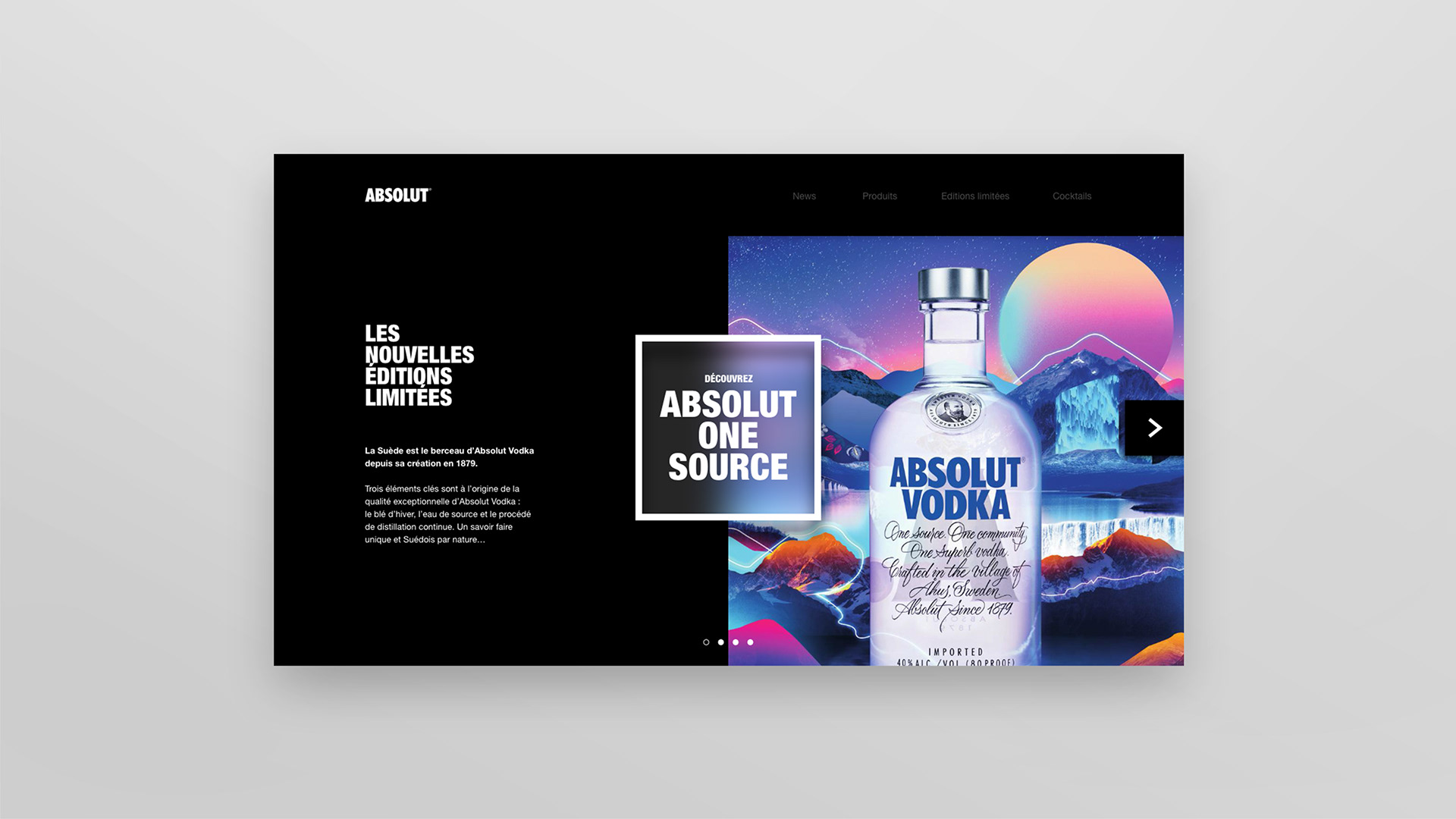 Refonte de l'interface UX & UI du site chez Absolut Vodka.