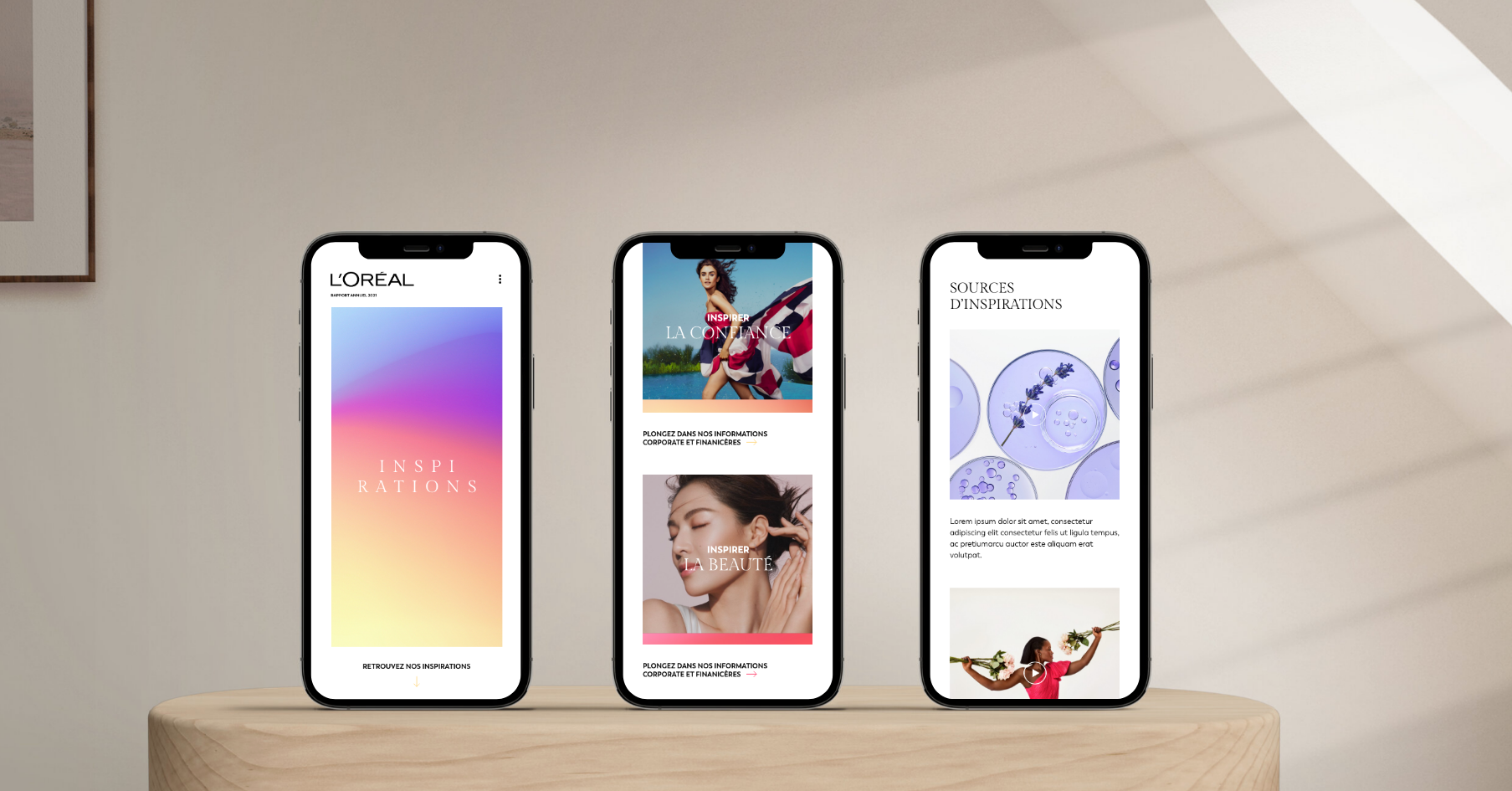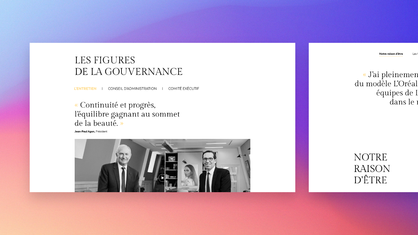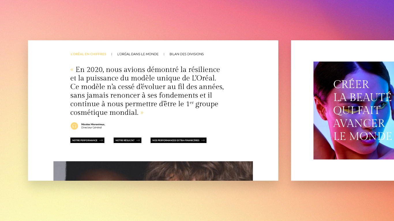 Création du design d'interface du rapport annuel 2021 chez L'Oréal.